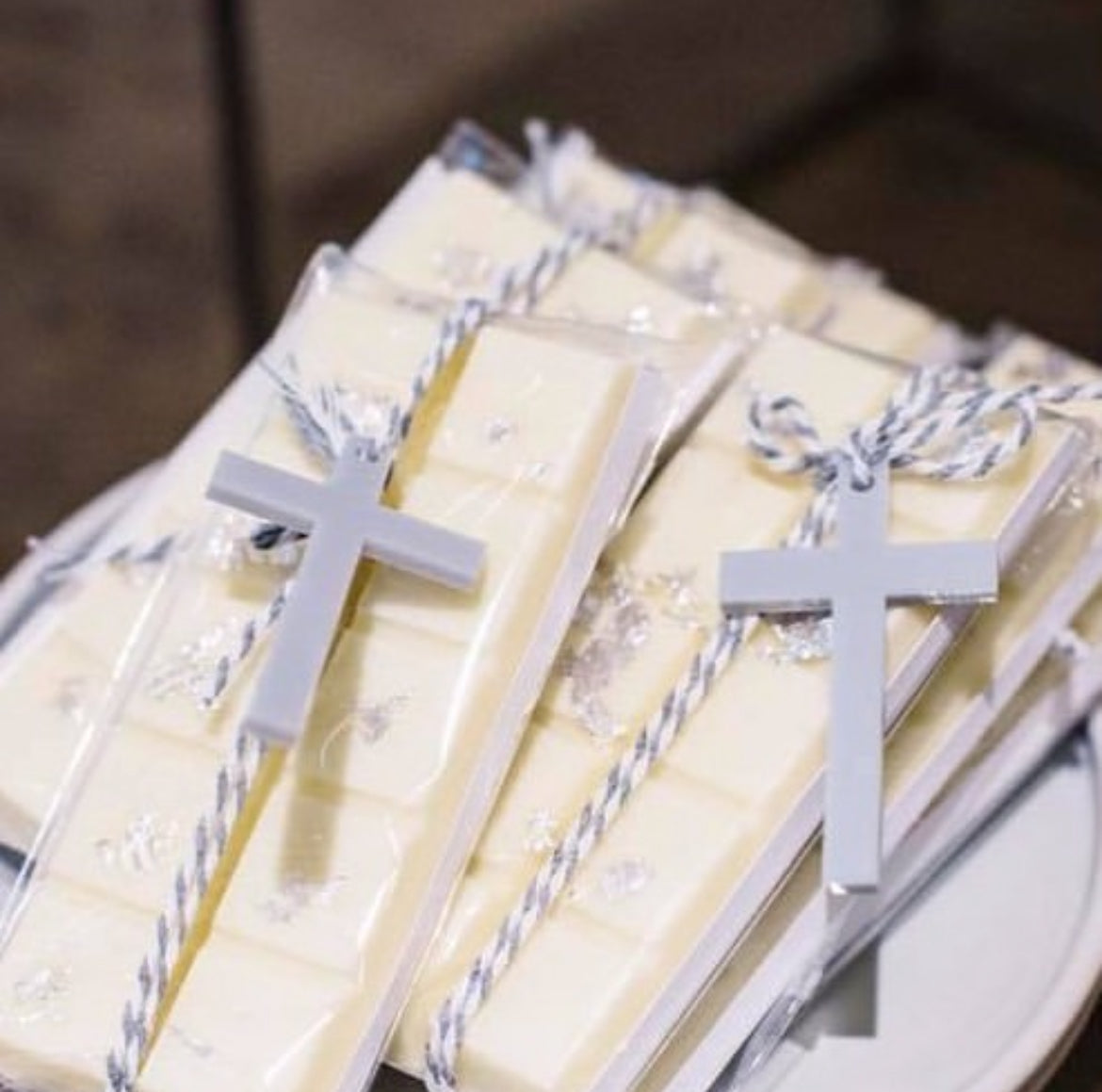 Add these to bomboniere's to symbolize your sacrament. They come with a hole in the top and come in a pack of 10. Choose from various colours. Personalisation is not recommended due to their size. text would be really quite small. Please note : Ribbon or string not included.